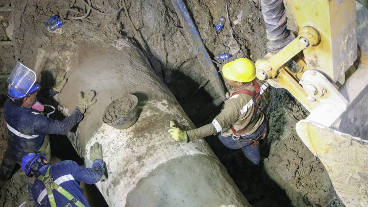 La tarea no fue fácil, ya que más de 50 personas, entre colaboradores de la empresa y brigadas de contratistas, trabajaron sin descanso en condiciones adversas. El suelo inestable y la proximidad a un canal pluvial complicaron las excavaciones para descubrir el tubo dañado, según explicó Acuacar.