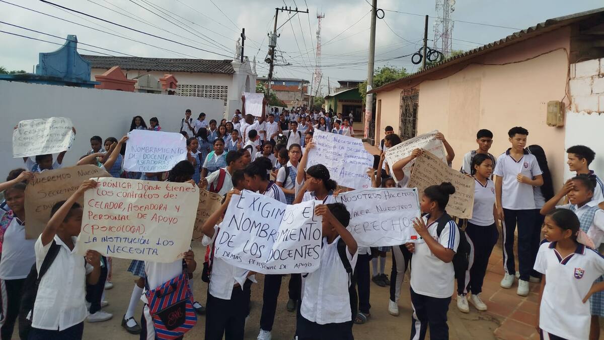 Los estudiantes de los grados 10 y 11 de la Institución Educativa Técnica Comercial de San Martín de Loba, Bolívar (Inetec), abandonaron una vez más las aulas de clases para salir a protestar por las calles como medida para exigir el nombramiento de los 10 docentes de diversas áreas que les hacen falta.