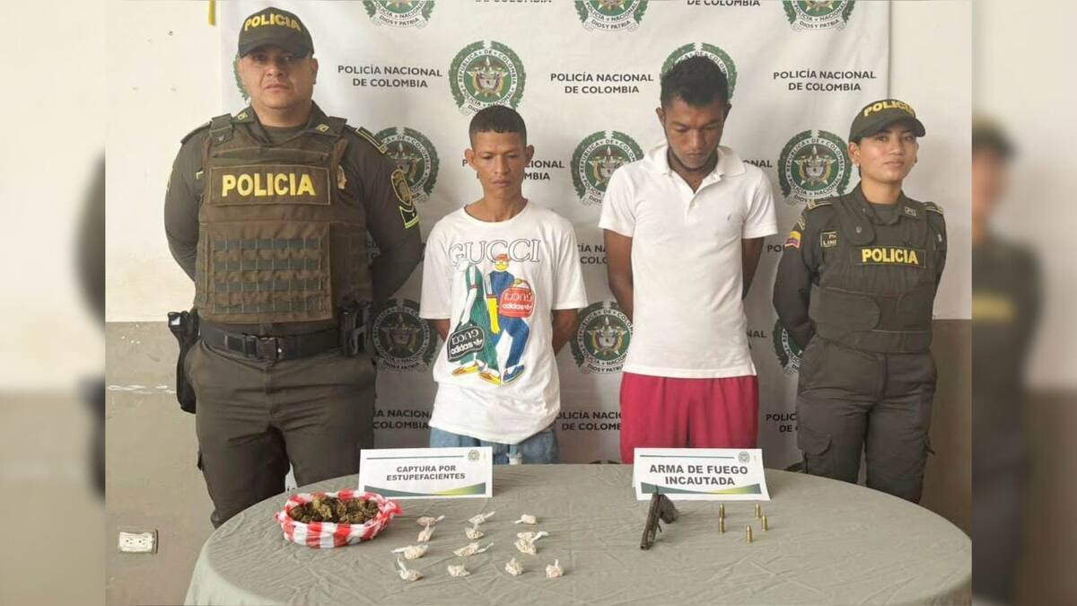 En el barrio La Paz, en desarrollo de una requisa, les hallaron en su poder dosis empacadas de cocaína y marihuana, y un arma de fuego de fabricación artesanal con 5 cartuchos sin percutir.
