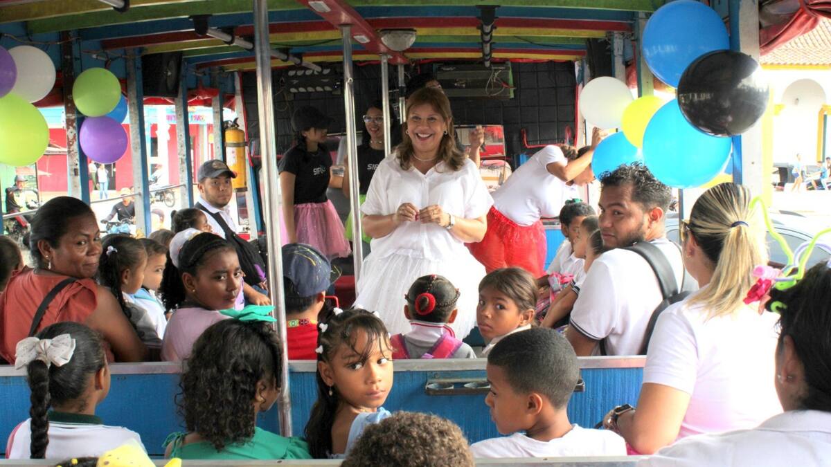 Los 20 niños beneficiados fueron paseados en una chiva que partió de la plaza principal y que contó con la presencia de la alcaldesa Claudia Espinosa Puello que los invitó a seguir esforzándose y estudiando para salir adelante y construir un mejor futuro para sus familias y el municipio en el que residen.
