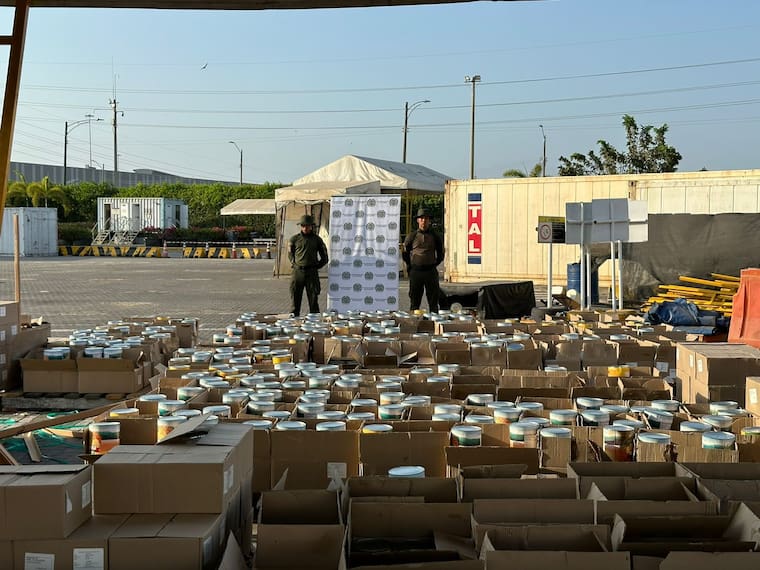 La Dirección Antinarcóticos de la Policía Nacional logró en las últimas horas decomisar 2,1 toneladas de clorhidrato de cocaína mezcladas en carbonato de calcio y en latas de piñas en almíbar que estaban a punto de zarpar con destino a Europa desde el puerto marítimo de Cartagena.