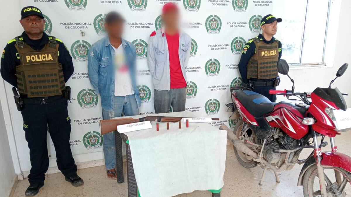 A disposición de la Fiscalía General de la Nación, para que respondan por el delito de porte y tráfico de armas de fuego, fueron dejados dos ciudadanos a los que las unidades de la Policía Nacional adscritas a la Estación de Río Viejo aprehendieron por portar una escopeta.