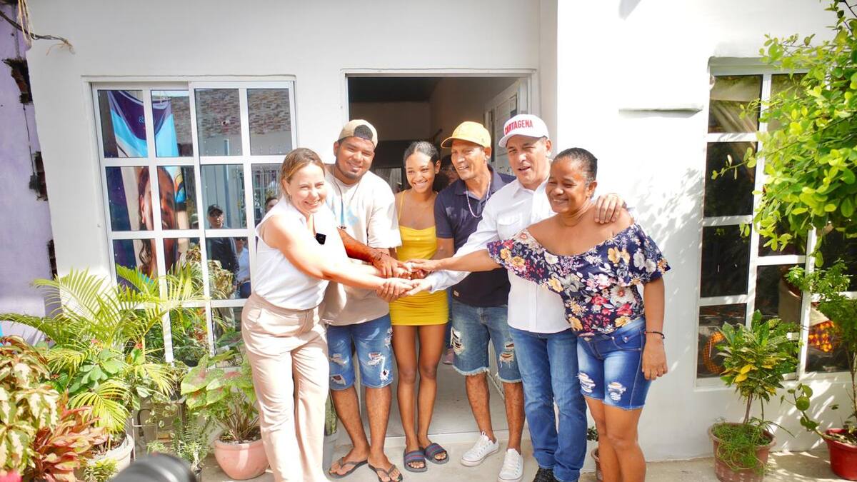La ministra de Vivienda, Helga Rivas, en compañía del alcalde mayor de Cartagena, Dumek Turbay Paz, oficializaron la entrega de este programa de subsidios que se denomina Cambia Mi Casa.
