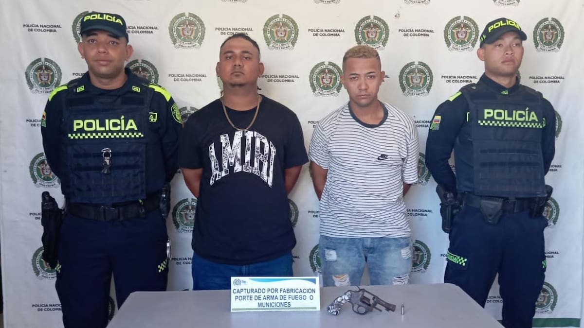 En los alrededores del Mercado del municipio de Arjona, Bolívar, se inició la persecución que terminó con la aprehensión de dos hombres que estaban armados. Se trata de Maicol Estiven Baldovino Simancas, de 20 años, y Maicol Hurtado Cogollo, de 25. Este último tiene una anotación judicial por el delito de homicidio agravado.