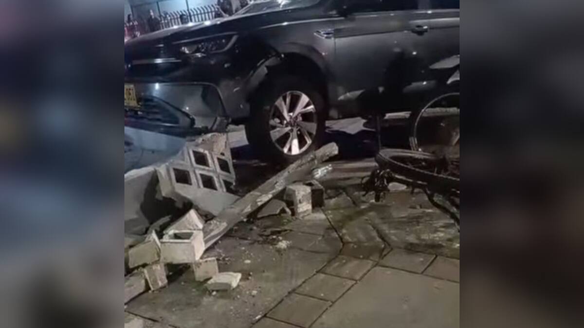 En imágenes que circulan en redes sociales también se observa que el vehículo que protagonizó el accidente derribó un muro de concreto.
