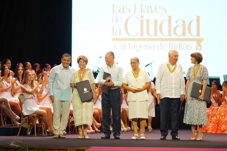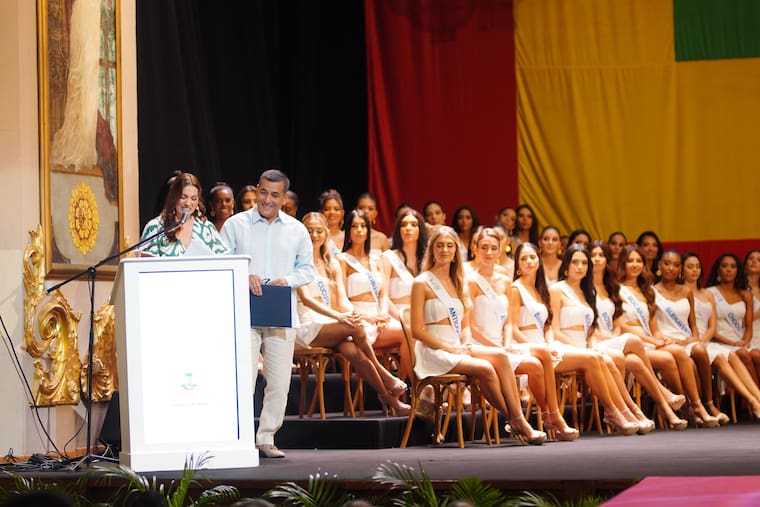 Los encargados de las entregas que las convierten en huéspedes de honor en Cartagena fueron el alcalde Dumek Turbay Paz y la gestora social Liliana Majana en una ceremonia que se efectuó en el Teatro Adolfo Mejía, el que se vistió de gala para recibir a las beldades.