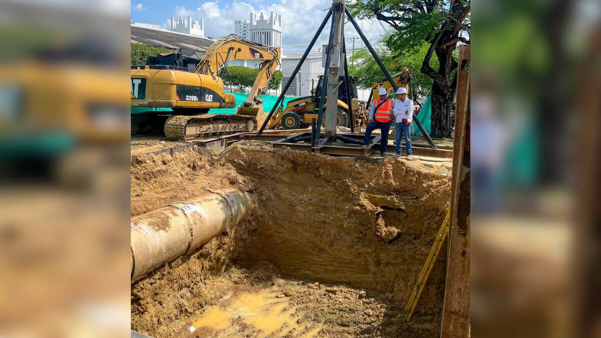 Frente a la interferencia presentada en el punto de trabajo de Santa Clara, Aguas de Cartagena tomó la decisión de superar el imprevisto y aplazar la terminación del empalme para una jornada de trabajo que se planificará en 2025.