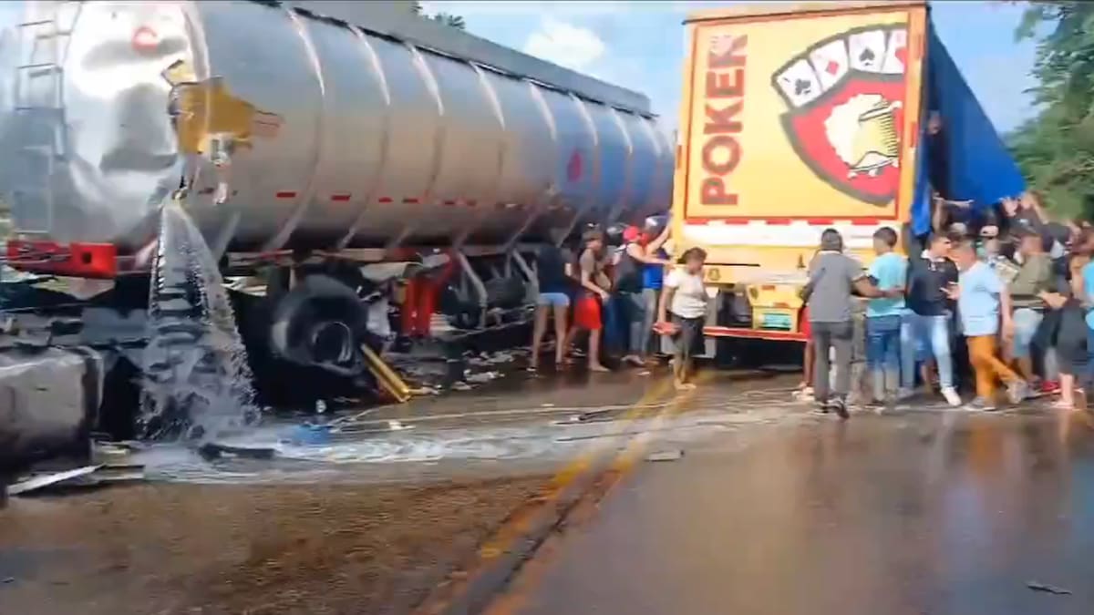 Mientras unos recolectaban el combustible, otros saqueaban las pacas de cerveza Poker que estaban en el otro vehículo de carga involucrado en la colisión. Ambos automotores se chocaron de frente en una curva, después de la 1:00 de la tarde, según testigos.