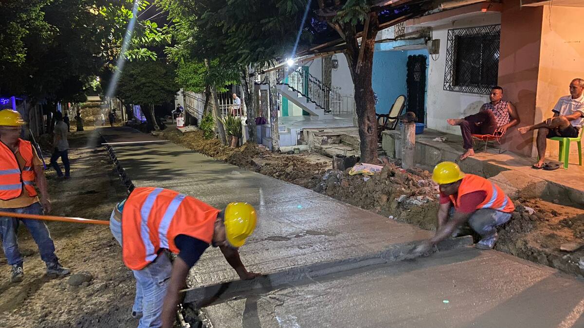 Avanzan los trabajos de la construcción de 2.5 kilómetros de pavimento en vías del municipio de San Juan Nepomuceno, Bolívar, que ejecuta la gobernación con recursos de regalías directas.