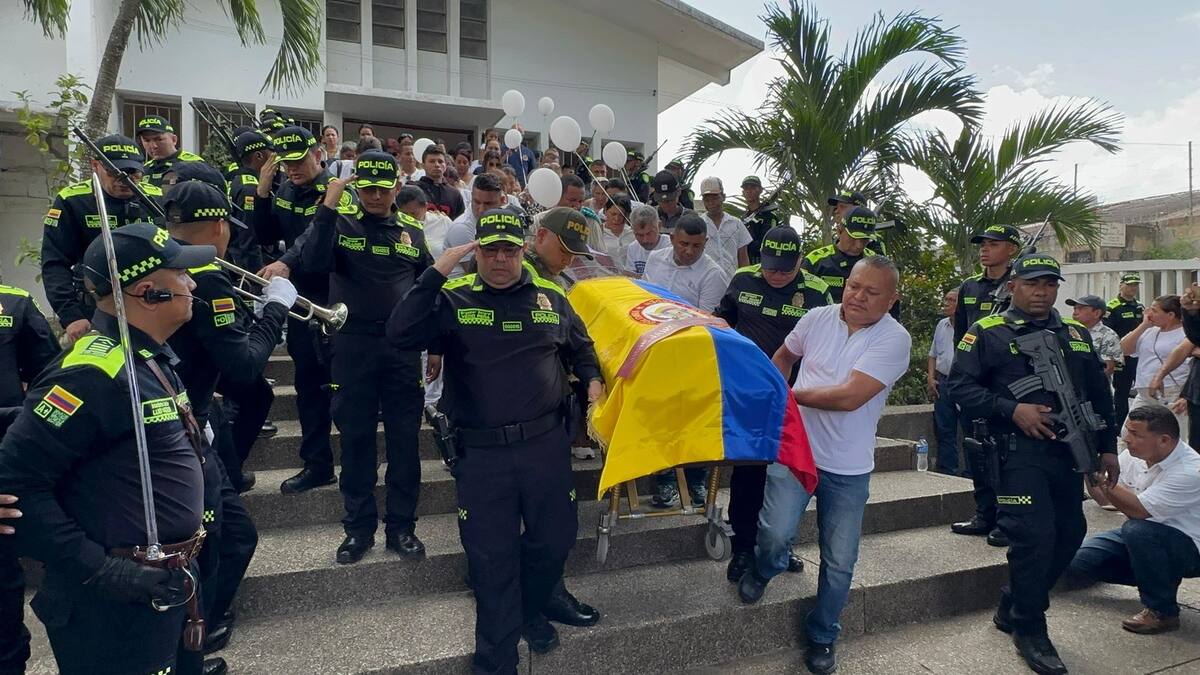 El brigadier general Peña Araque le dijo a la familia de Evangelista Monterroza que la Policía los acompaña en este duro momento, y que la institución tiene un profundo dolor y por eso “nuestra bandera está a media asta por la pérdida de dos grandes policías. Que los buenos recuerdos y momentos les permitan hallar consuelo para esta pérdida irreparable”.