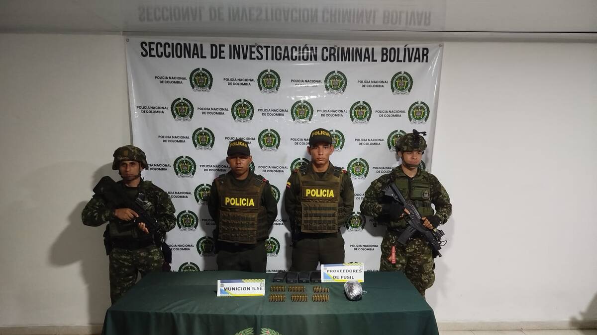 Entre los elementos incautados están 4 proveedores de fusil y 215 cartuchos calibre 5.56 mm.