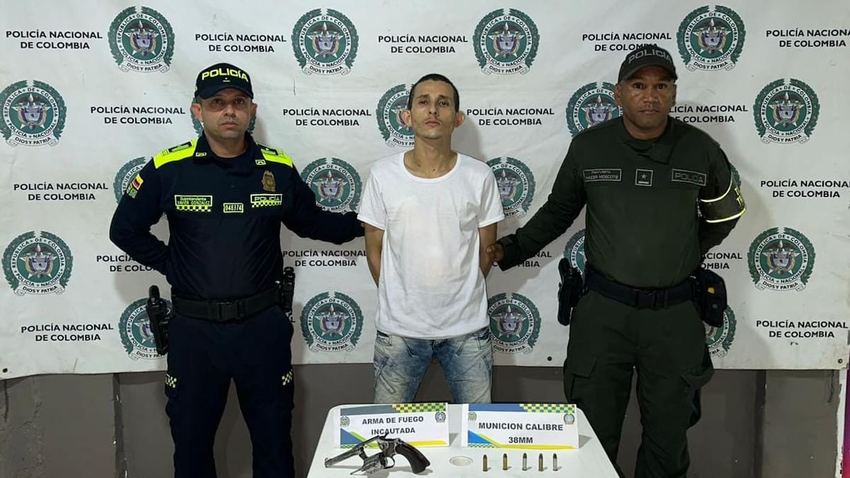 Su detención en vías de Bolívar la hicieron efectiva unidades de la seccionales de Investigación Criminal y Tránsito y Transporte, en El Carmen, cerca del aeropuerto Monteriano. Le hallaron en su poder un revólver con cinco cartuchos, por lo que debe responder por el delito de porte y tráfico de armas de fuego.