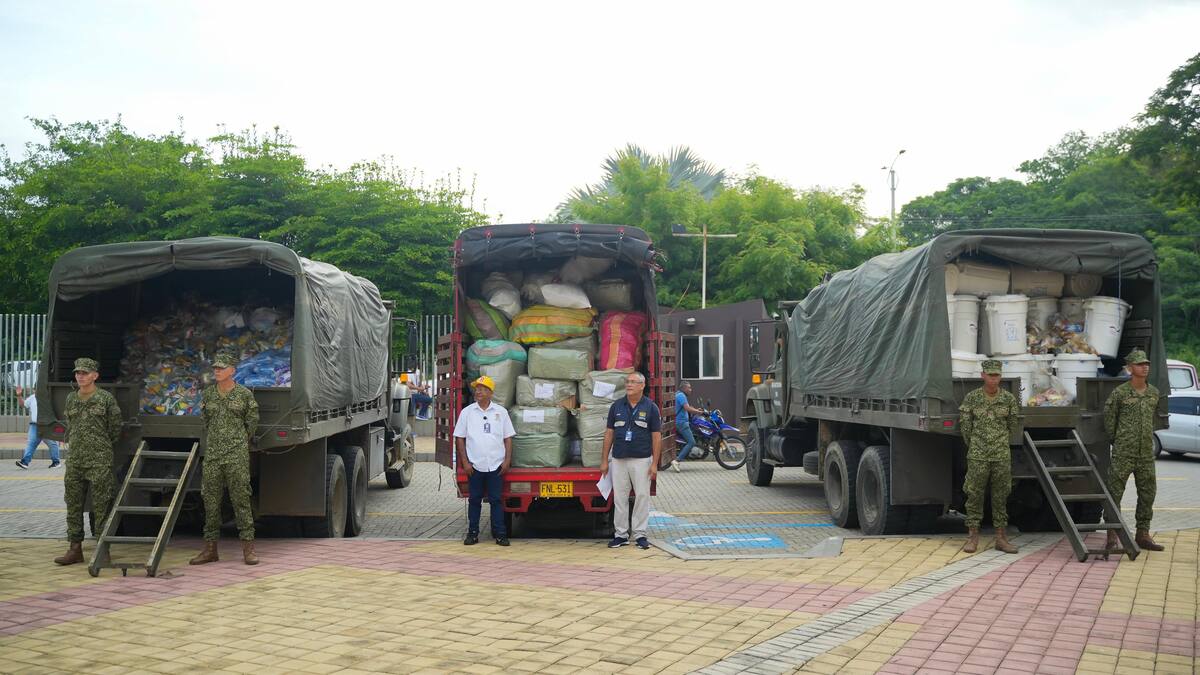 Las 15 toneladas de ayudas están representadas en: 1.200 mercados con alimentos esenciales; 3 toneladas de víveres recolectados en los Montes de María; 2.000 pares de zapatos entregados por la DIAN y kits de aseo, cocina, medicamentos y productos de primera necesidad.