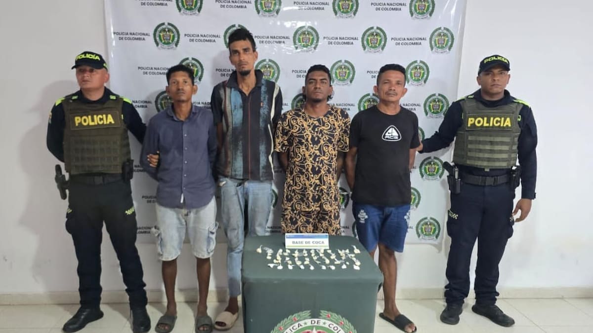 Se trata de Andrés David Suárez Pedroza, de 24 años; Carlos Armando Simanca Vega, de 46; Wanner Miguel Torres Arrieta, de 29; y Carlos José Bersinger Muñoz, de 32 años, a quienes les incautaron 125 dosis de cocaína y 3 pipas para consumo.