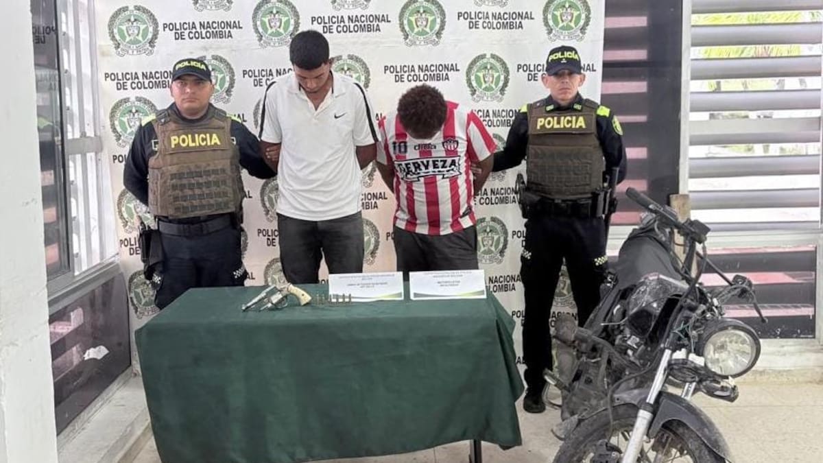 Las aprehensiones ocurrieron en el barrio Macondo y cobijan a Óscar José Passos Gómez, de 36 años, y Harrizon Esnéider Ramírez Palmieris, de 24, quienes fueron sorprendidos robando a tres ciudadanos mediante intimidación con arma de fuego.