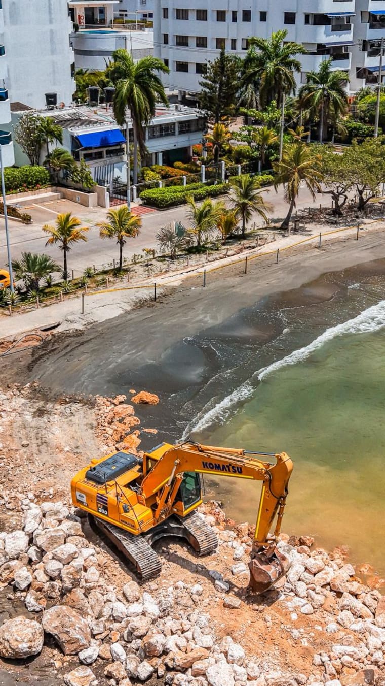De igual manera, el frente El Cabrero-Marbella, que concentra 3,8 kilómetros de intervención, entrará próximamente en fase activa como parte del cronograma de ejecución, ampliando el alcance de una obra que no solo responde a la emergencia actual derivada del reciente frente frío que causó graves afectaciones al borde costero de la ciudad, sino que proyecta la protección de Cartagena hacia las próximas décadas.