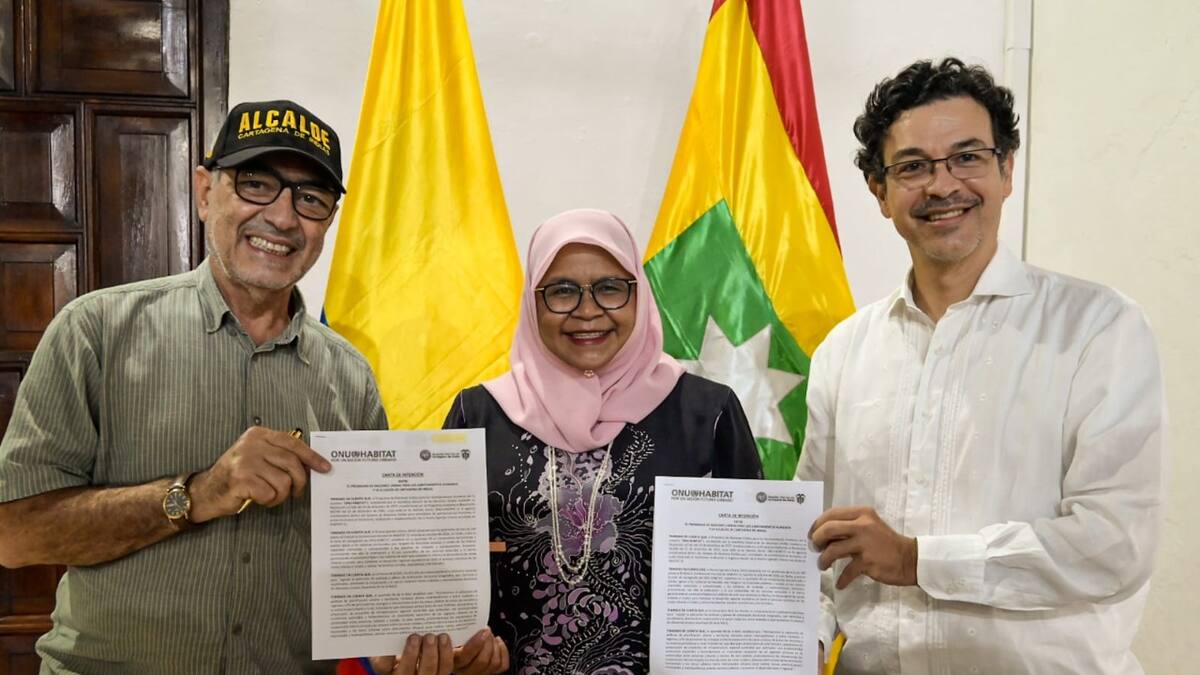 El alcalde, William Dau Chamat, firmó con Elkin Velásquez, director regional para América Latina y el Caribe de ONU Hábitat, y con la presencia de la directora Ejecutiva de ONU- Hábitat, Maimunah Mohd Sharif, una carta de intención para el intercambio de conocimientos y fortalecimiento de capacidades que promuevan una planeación y gestión sostenible a mediano y largo plazo en el Distrito.