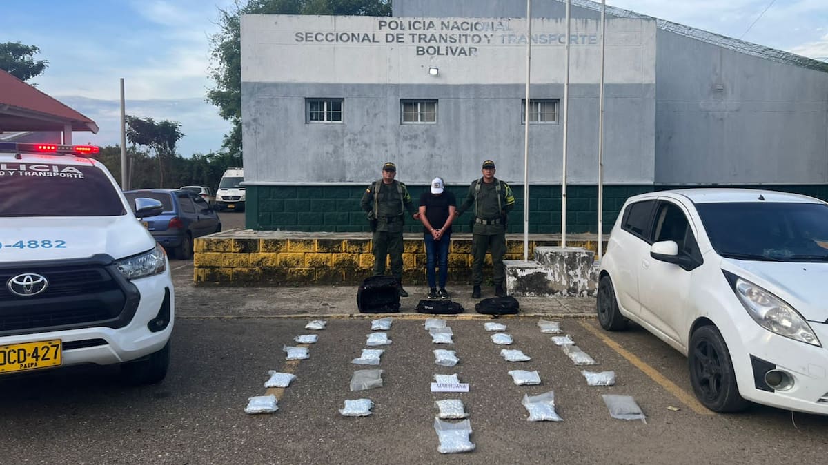 Los uniformados adscritos a la Seccional de Tránsito y Transporte de la Policía incautaron de 13 kilos de marihuana que estaban distribuidos en 26 ‘panelas’ que a su vez estaban envueltas en papel aluminio y cinta transparente.