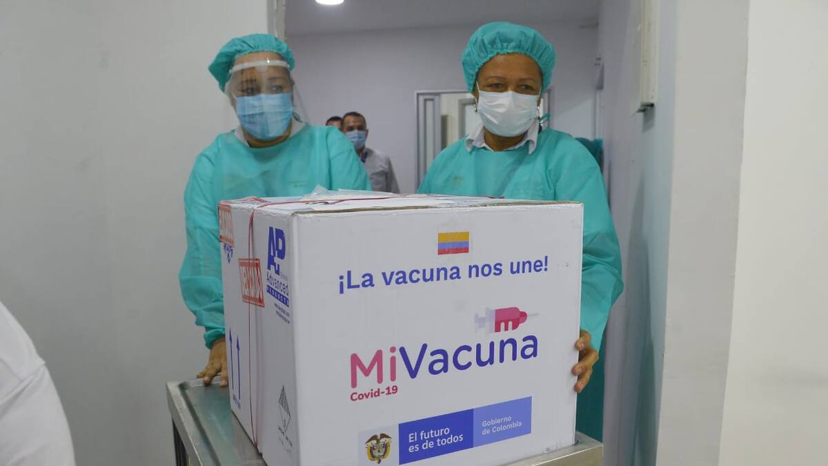 Los biológicos fueron custodiados por personal de la Policía y de la Armada Nacional, hasta el punto de acopio habilitado en la Gobernación de Bolívar, desde donde serán distribuidos hacia los dos puntos de vacunación.