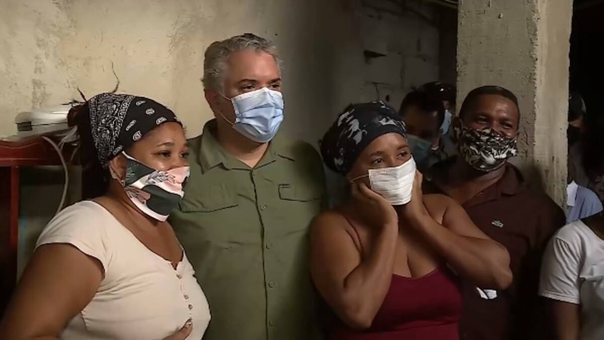 El presidente Iván Duque visitó la tarde de este domingo el barrio La Popa de Cartagena, una de las zonas golpeadas por inundaciones y deslizamientos que dejó a su paso la tormenta tropical Iota.