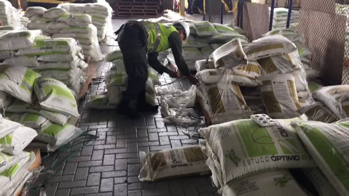 De acuerdo con las autoridades, el alijo estaba oculto en los sacos que contenían adhesivos para cerámica mezclados con clorhidrato de cocaína.