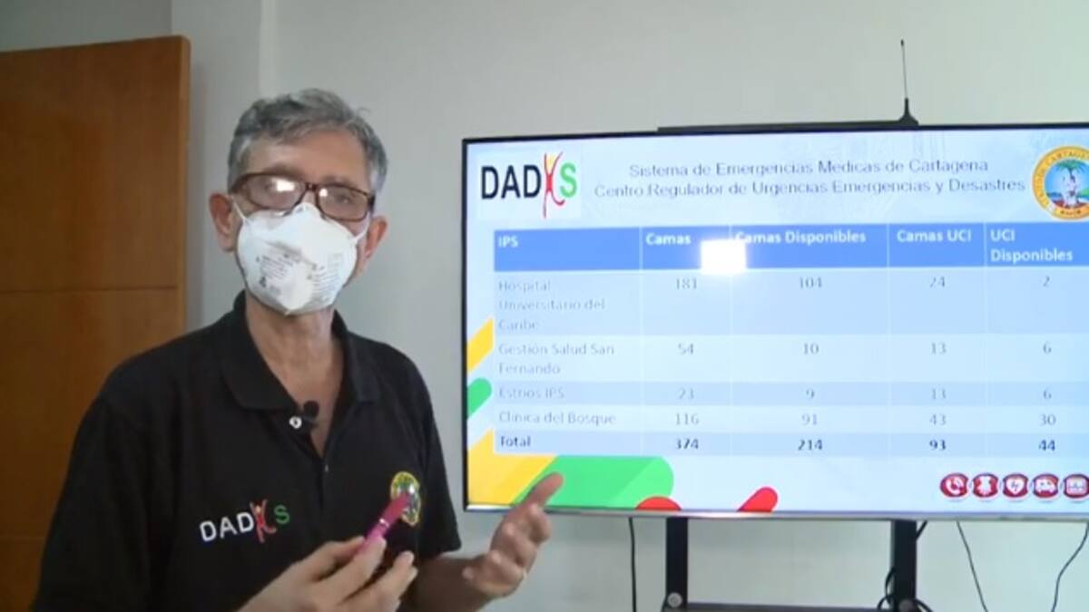 A través de video, el funcionario indicó que hasta hoy, la red hospitalaria del Distrito de Cartagena tiene una disponibilidad de 374 camas, pero para pacientes diagnosticados con coronavirus hay 214, y de camas en unidad de cuidados intensivos, UCI, se tienen 44 disponibles, de un total de 93.