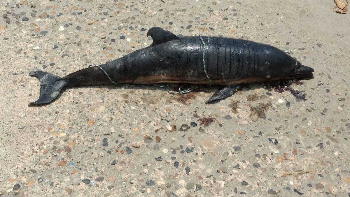 En las playas del sector Marbella, fue hallado por parte de un salvavidas, un delfín bebé en estado de descomposición.