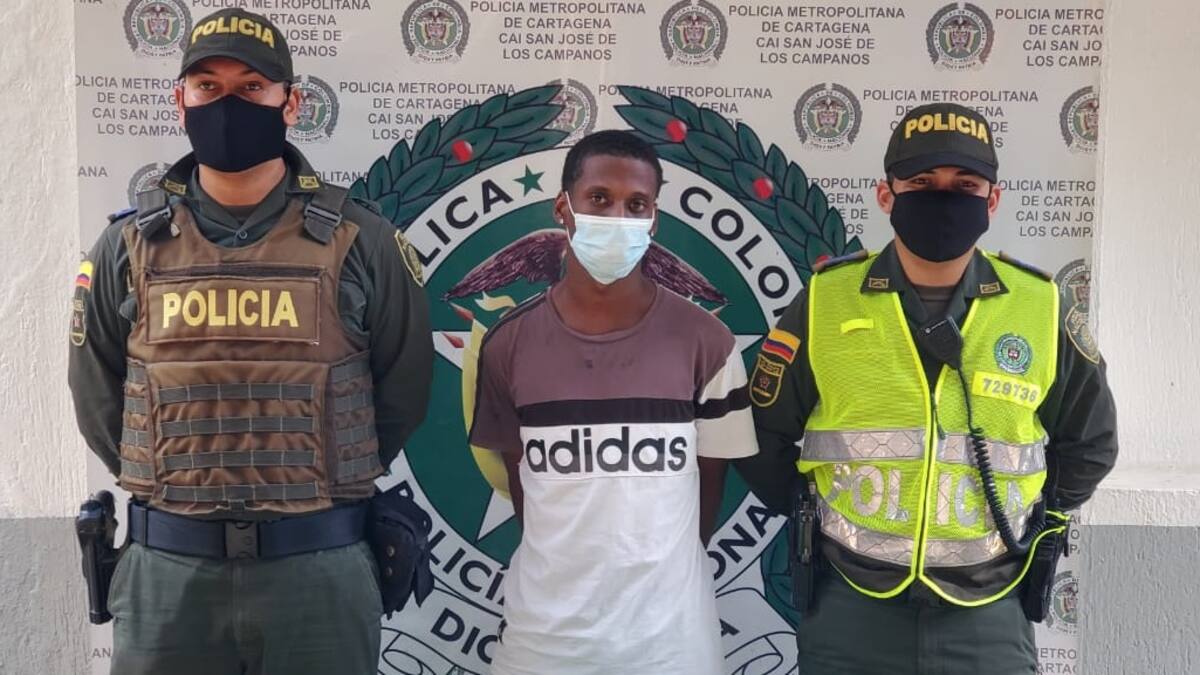 En flagrancia, así fue capturado un llamado influencer en la vía que conduce al Parque Heredia, en el suroriente de Cartagena, cuando portaba uniformes e insignias de uso exclusivo de la Policía Nacional, lo que constituye en una conducta delictiva, prevista en el artículo 36 del código penal.