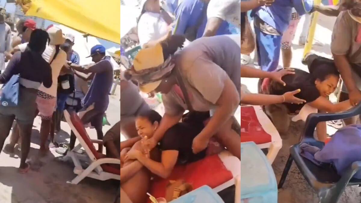 Sin embargo, las involucradas oponen resistencia e incluso se tumbaron en la arena de la playa.