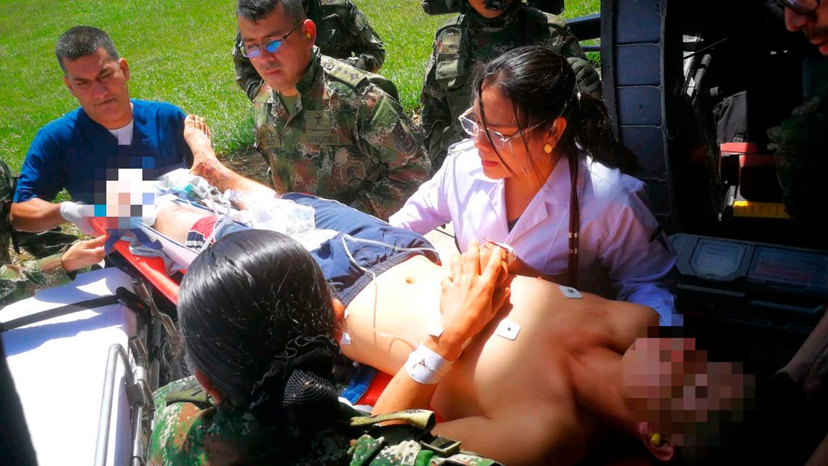 'La primera llamada la recibimos por parte de la comunidad del sector, de igual manera la Alcaldía municipal toma contacto con nosotros y manifiesta el hecho. Son ellos quienes envían la ambulancia al municipio para poder evacuar al menor de edad hasta las instalaciones del Batallón Selva 48 y ahí nosotros como institución desplegamos todos los medios y ponemos a disposición todas las aeronaves para garantizar la vida del menor quien es trasladado a la ciudad de Bucaramanga', dice