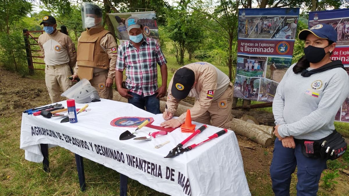 'El arduo trabajo de descontaminación que realizan las Tropas de Infantería de Marina para eliminar la amenaza de las minas antipersonal que ponen en riesgo la vida de los habitantes de la subregión de los Montes de María, se realiza en el marco del cumplimiento a estrictos protocolos internacionales de seguridad y los más altos estándares de calidad', dijo la Armada a través de un comunicado.