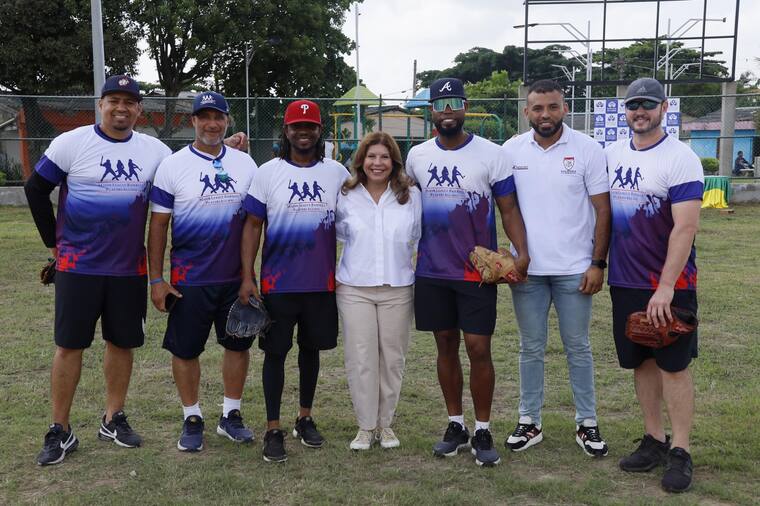 Los exgrandes ligas Sugar Ray Marimón y Ernesto Frieri estuvieron en esta clínica de béisbol.