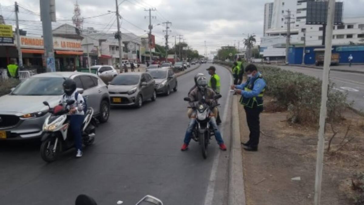 Con apoyo de la Policía Nacional y la gerencia de Espacio Público, los agentes controlan el acceso de vehículos y peatones en el sector Bazurto y avenida del Lago, con el fin de evitar aglomeraciones en esa transitada vía de la ciudad.
