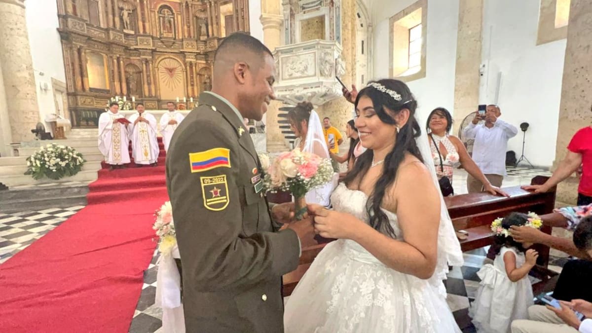 'En la Catedral de Santa Catalina, en pleno corazón del Centro Histórico de Cartagena, dieron el sí en el matrimonio colectivo de la Policía de Bolívar y Policía Cartagena. Fueron 10 las parejas que recibieron la bendición de Dios para iniciar un nuevo camino en sus vidas', se lee en el trino de la institución armada.