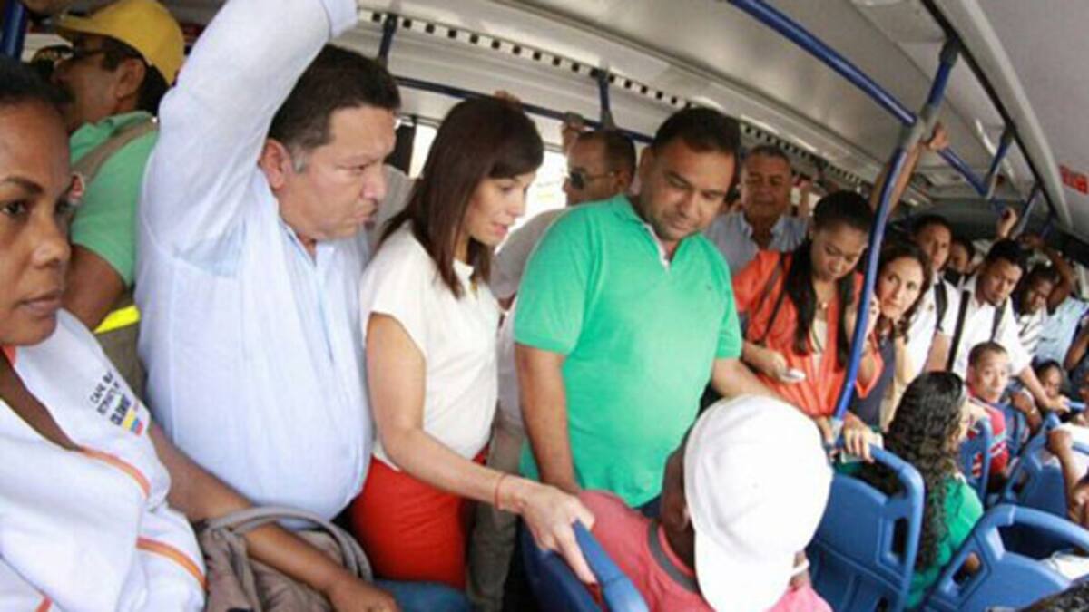 Cartagena. La ministra de Transporte, Natalia Abello, como cualquier parroquiana hizo la ruta pedagógica en un bus articulado de Transcaribe. Incluso, le tocó por varios minutos ir de pie, hasta que un caballero le cedió el puesto.