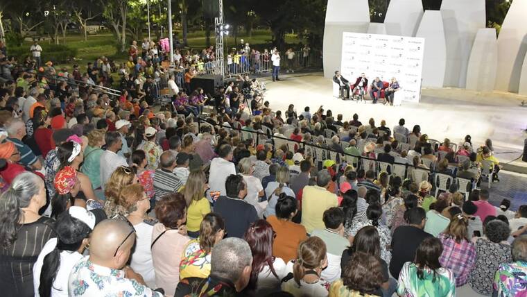 Fue tanto el éxito de la convocatoria que muchas personas se ubicaron a los alrededores de la gradería y se acomodaron para seguir cada detalle de la entrevista y el concierto.