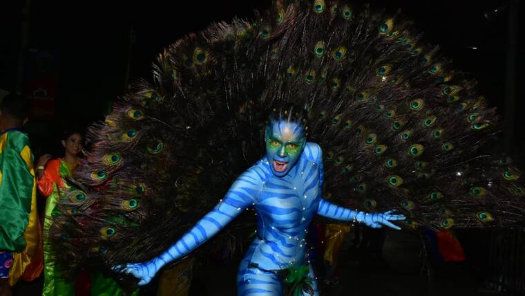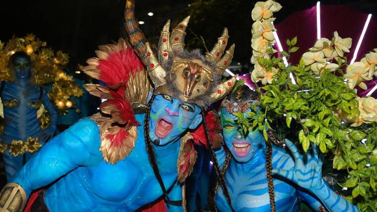 El disfraz colectivo avatar fue uno de los más esperados de la noche. Ellos con su atuendo azul extraterrestre.