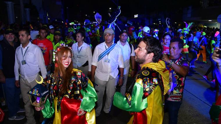 El alcalde Jaime Pumarejo y la primera Dama, Silvana Puello, desfilaron con la comparsa Salón Burrero Pa La Calle, integrada por habitantes y exhabitantes de calle.