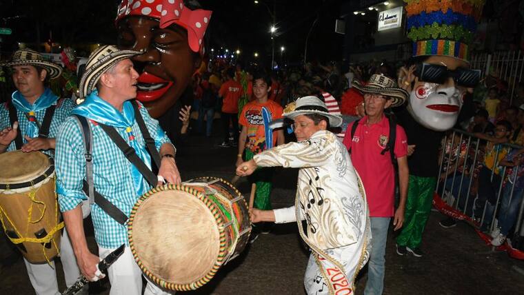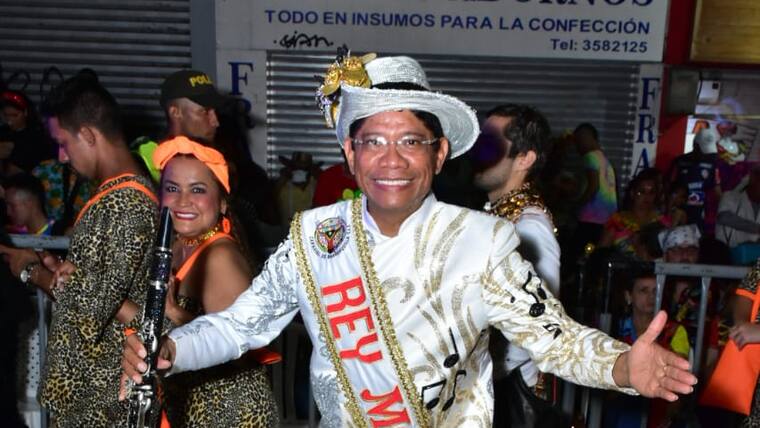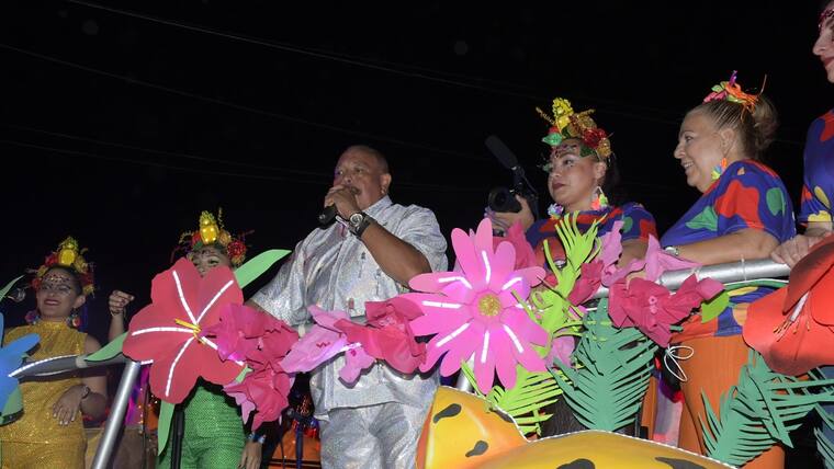 El rey Momo, Alcides Romero, haciendo alarde de sus dotes de cumbiambero, desfiló tocando la tambora.