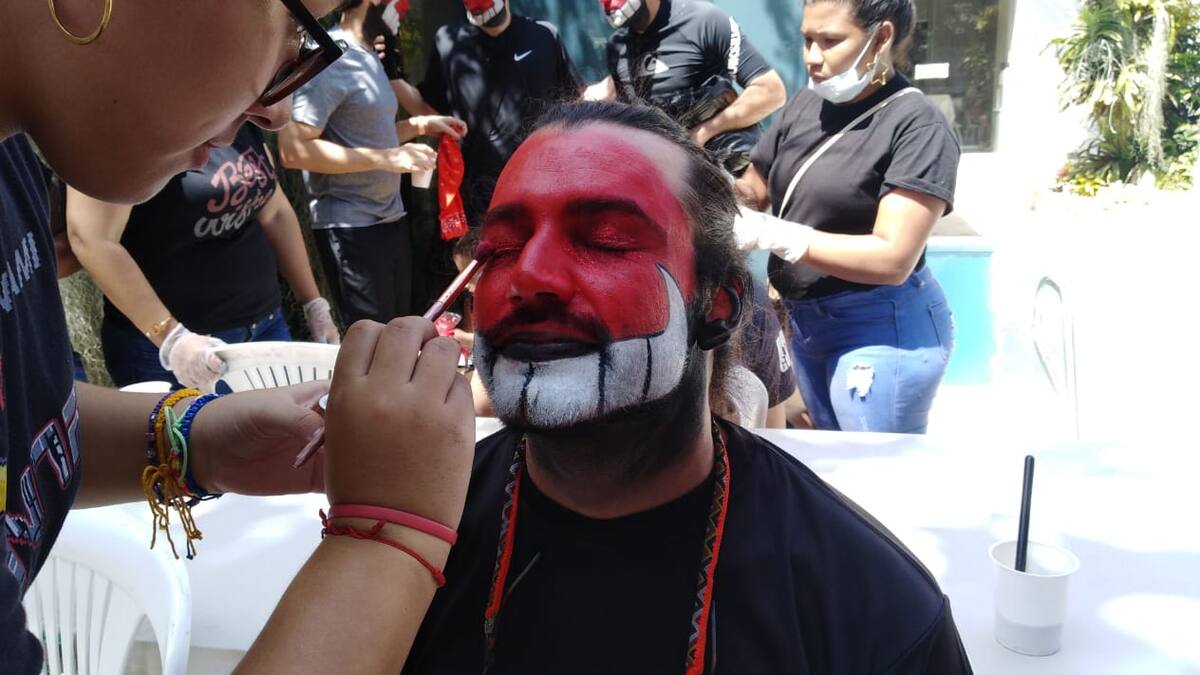 Christian Byfield está emocionado, no deja de moverse en el preámbulo del maquillaje y vestuario con la Danza de los Gorilas.