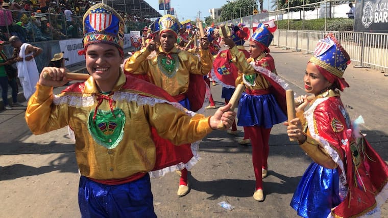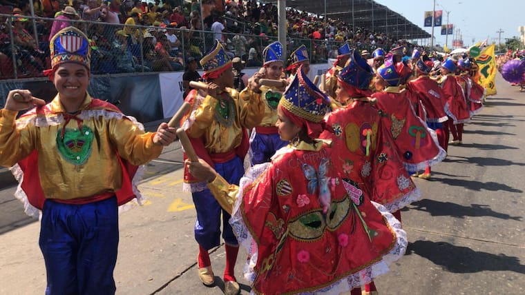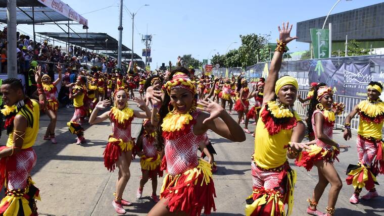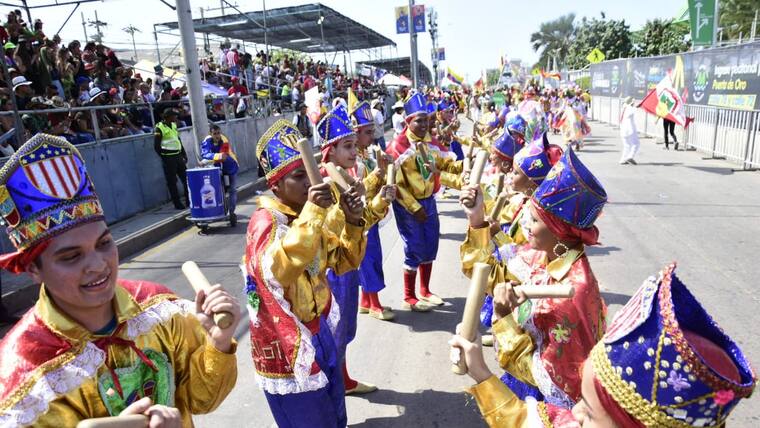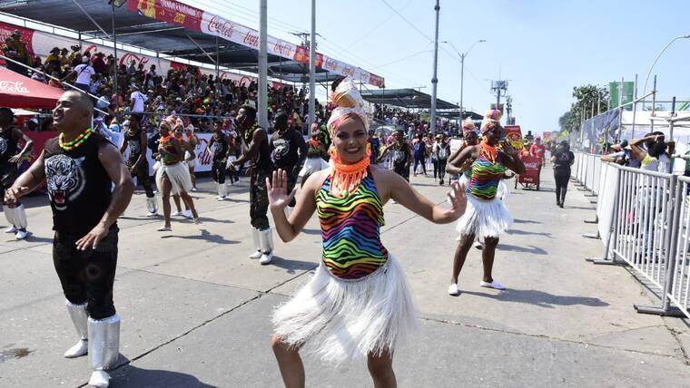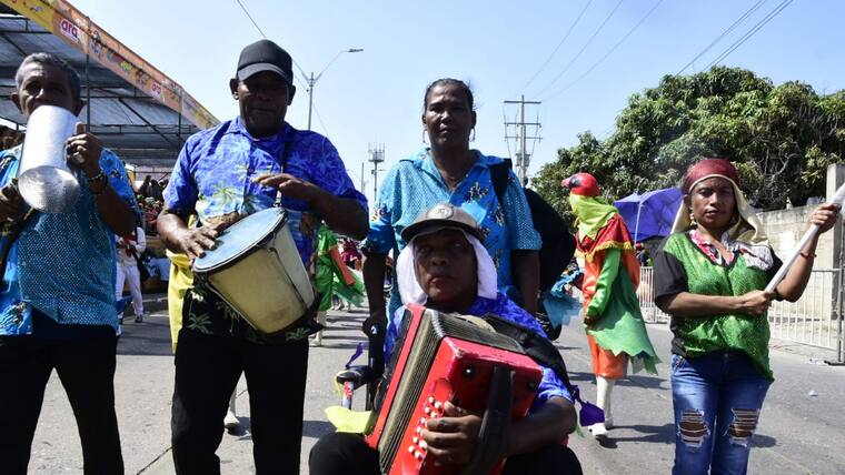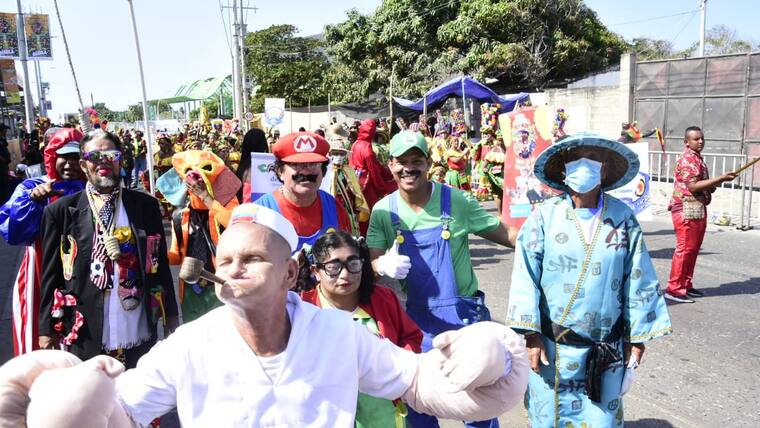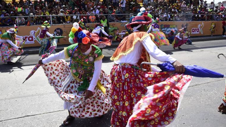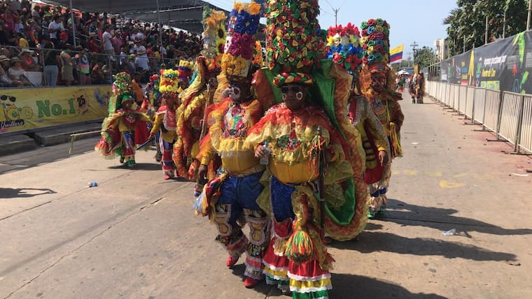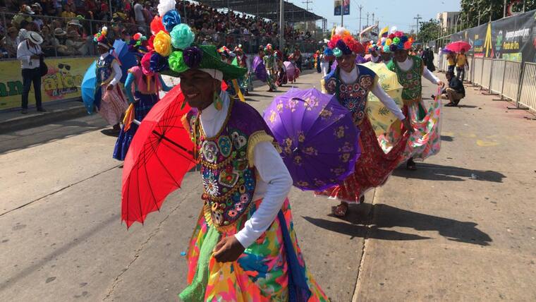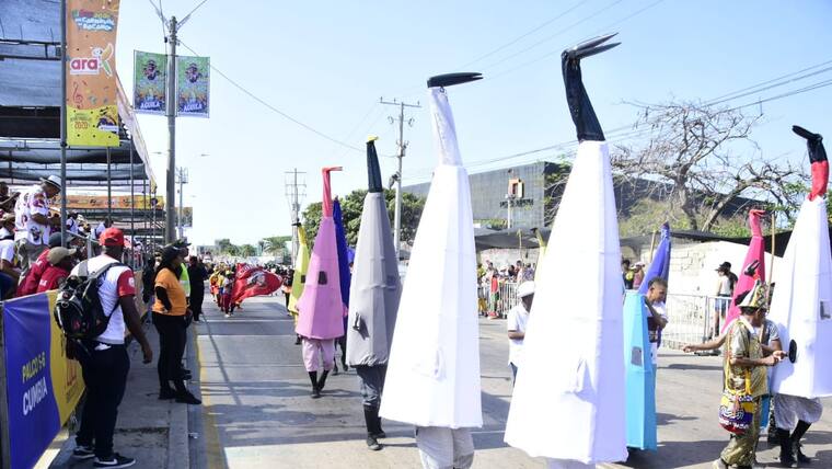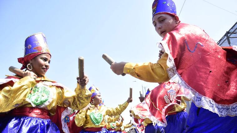 El reloj marcaba la 1:30 de la tarde de este domingo y el repicar de los cueros de las tamboras del grupo de millo que acompañaba a los Cabezones, quienes vestidos de colores fluorescentes bailaban y brincaban de un lado a otro animando a los espectadores, indicaba que la gozadera de la Gran Parada de Tradición se abría paso en el Carnaval de Barranquilla.