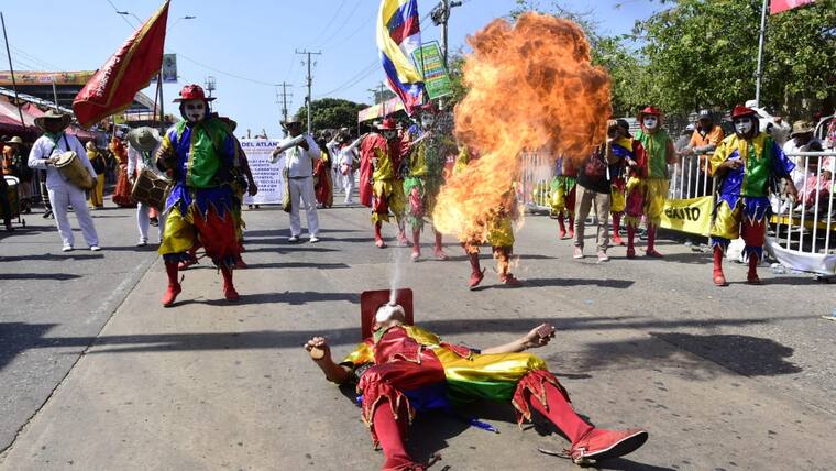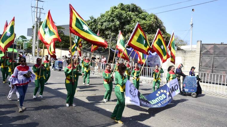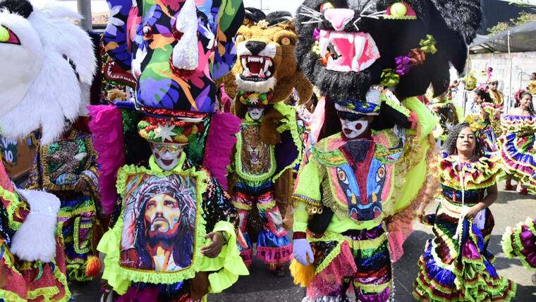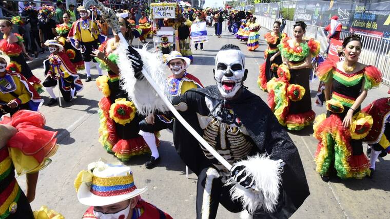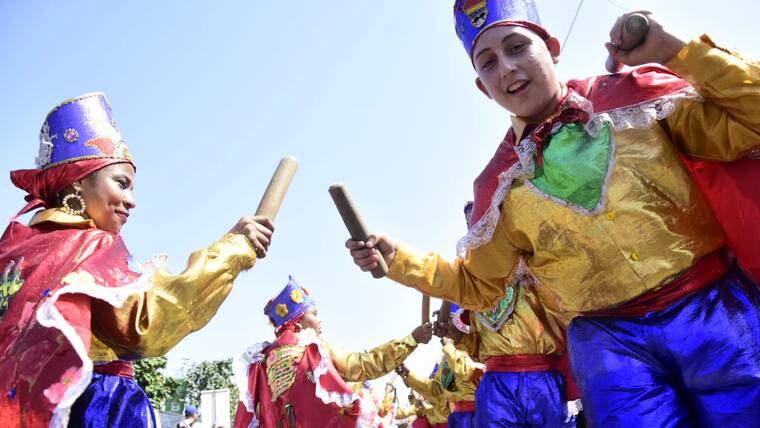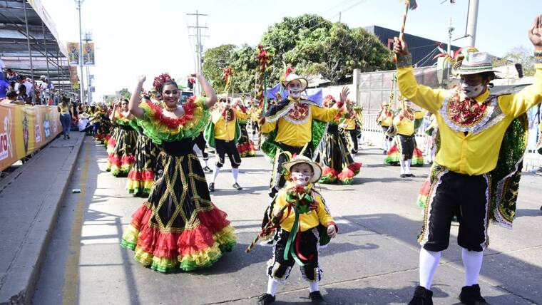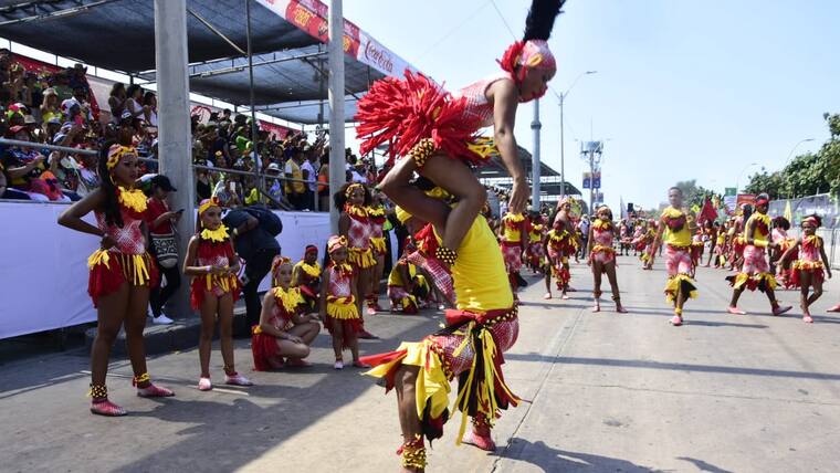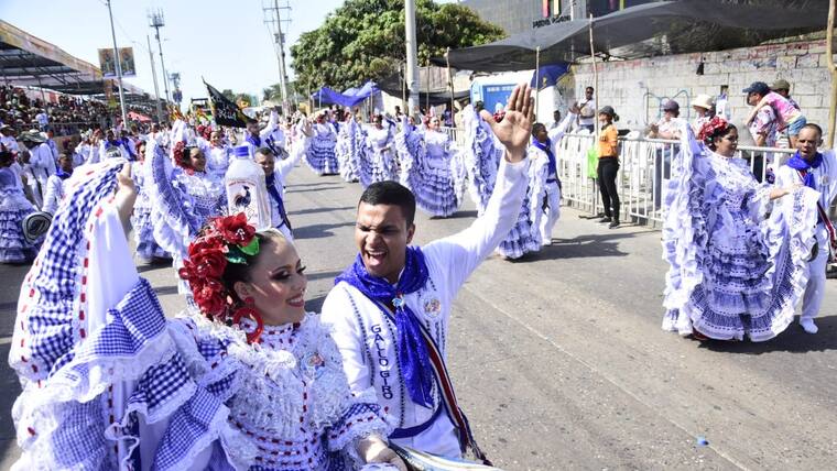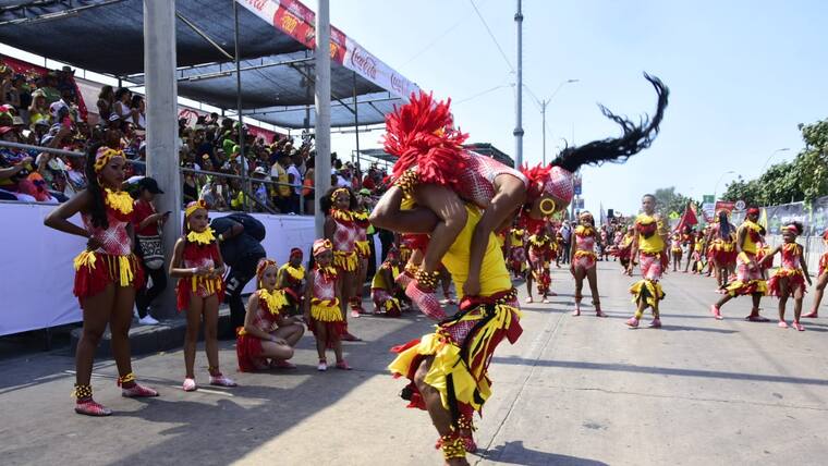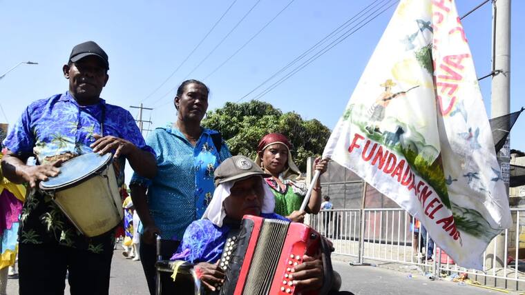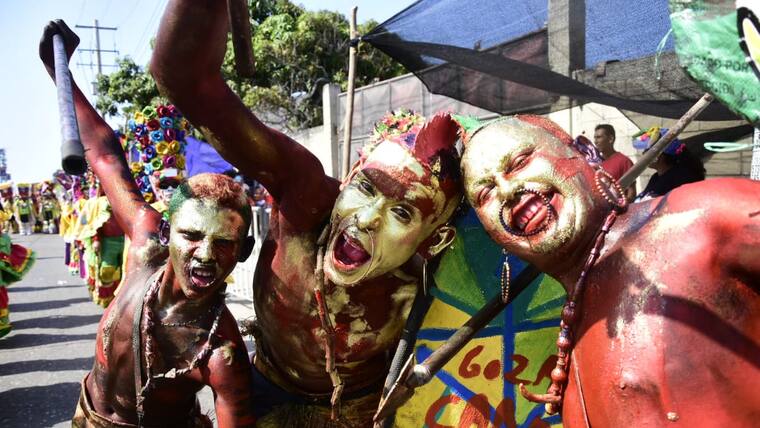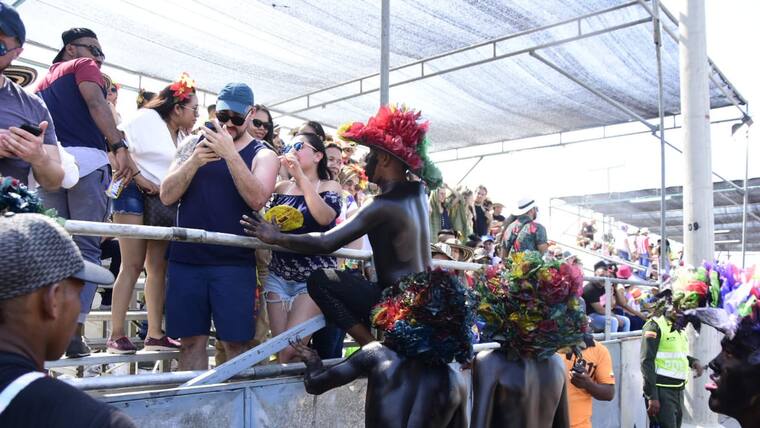 El reloj marcaba la 1:30 de la tarde de este domingo y el repicar de los cueros de las tamboras del grupo de millo que acompañaba a los Cabezones, quienes vestidos de colores fluorescentes bailaban y brincaban de un lado a otro animando a los espectadores, indicaba que la gozadera de la Gran Parada de Tradición se abría paso en el Carnaval de Barranquilla.