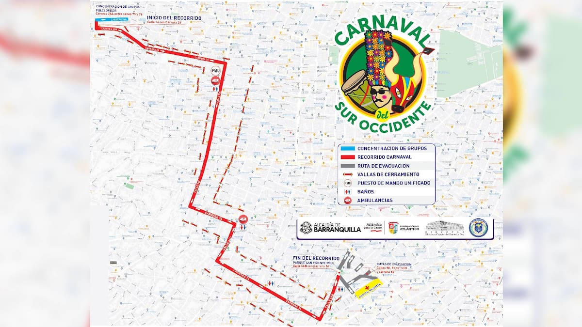 El Gran Desfile de Carnaval del Suroccidente, se realizará este sábado 11 de febrero, a partir de la 1:30 de la tarde, se dará inicio en la calle 76 con 26 y finalizará en el parque San Vicente en la calle 53 D con carrera 16.