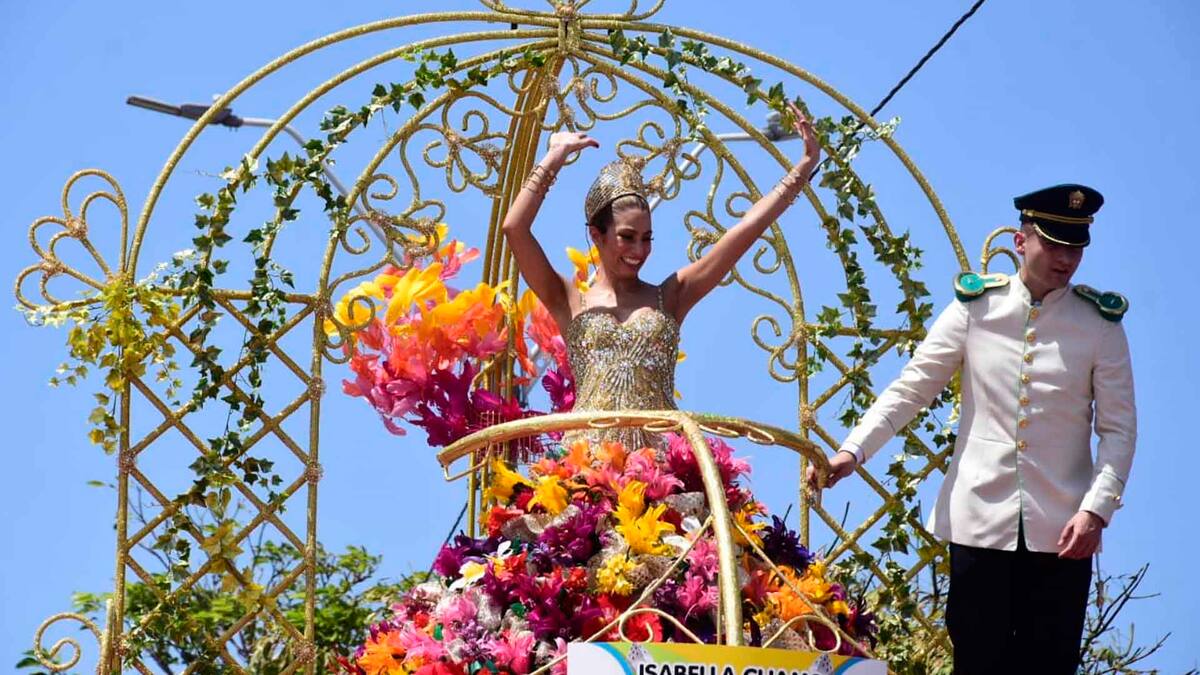 La reina del Carnaval de Barranquilla, Isabella Chams Vega, desfiló en una imponente carroza llamada ‘Poesía real’. Al paso de la reina solo se escuchaba 'llegó Isabella, llegó'.