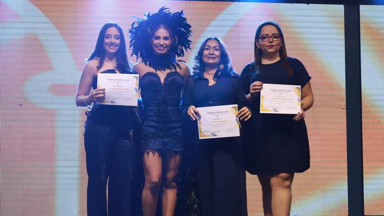 • Isabella junto a las estudiantes creadoras del atuendo.