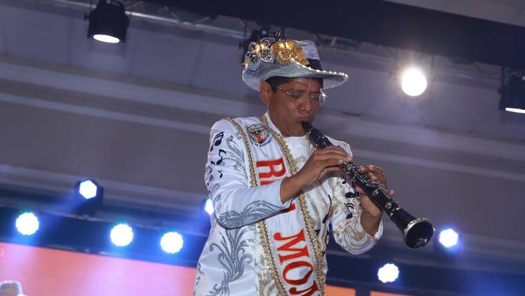 • El Rey Momo le fue entregado un atuendo que hace honor a su experticia musical.