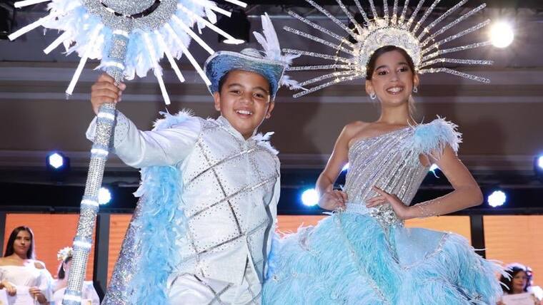 Seguidamente, los Reyes del Carnaval de los Niños Miranda Torres e Isaac Rodríguez, engalanarán el desfile luciendo el diseño la ‘Destellos de Alegría’ en homenaje a la ´Luna de Barranquilla´, nombre que lleva el tercer bloque del tradicional desfile.
