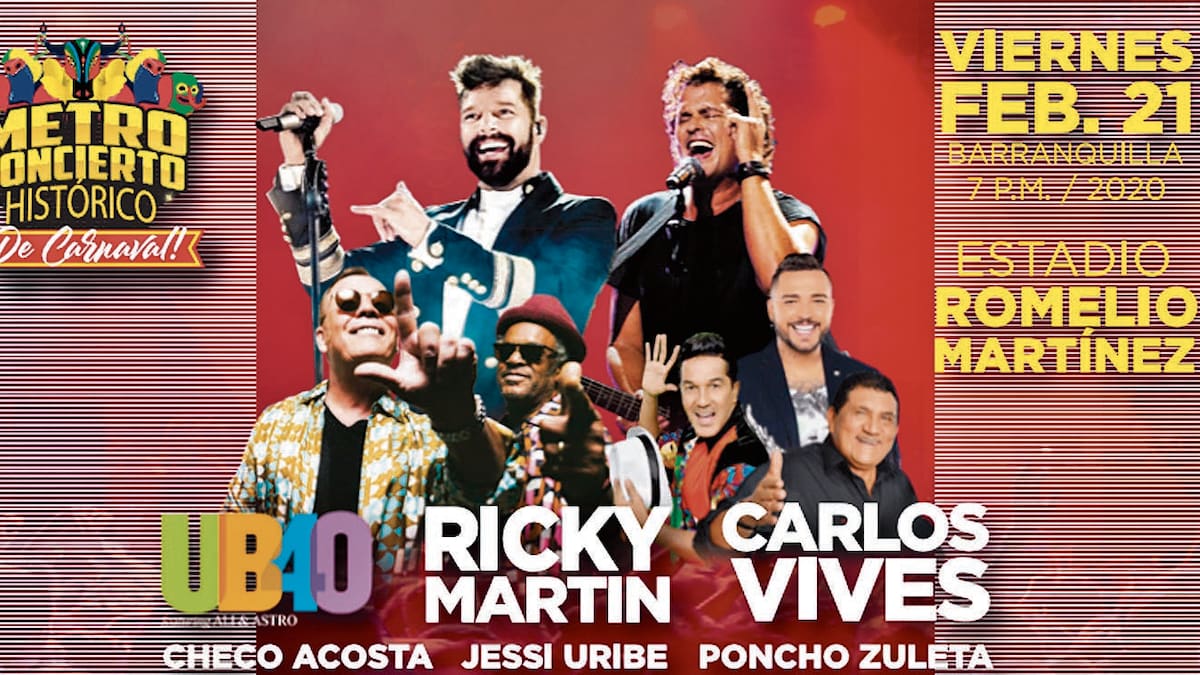 El Carnaval 2020 será recordado por muchos como la fiesta que trajo por primera vez a Barranquilla a sus artistas favoritos, pues Ricky Martin y UB40 debutarán en el Metroconcierto Histórico el viernes, 21 de febrero, en el estadio Romelio Martínez. Ellos estarán acompañados por Carlos Vives, Jessi Uribe, Poncho Zuleta y el príncipe del Carnaval, Checo Acosta.
