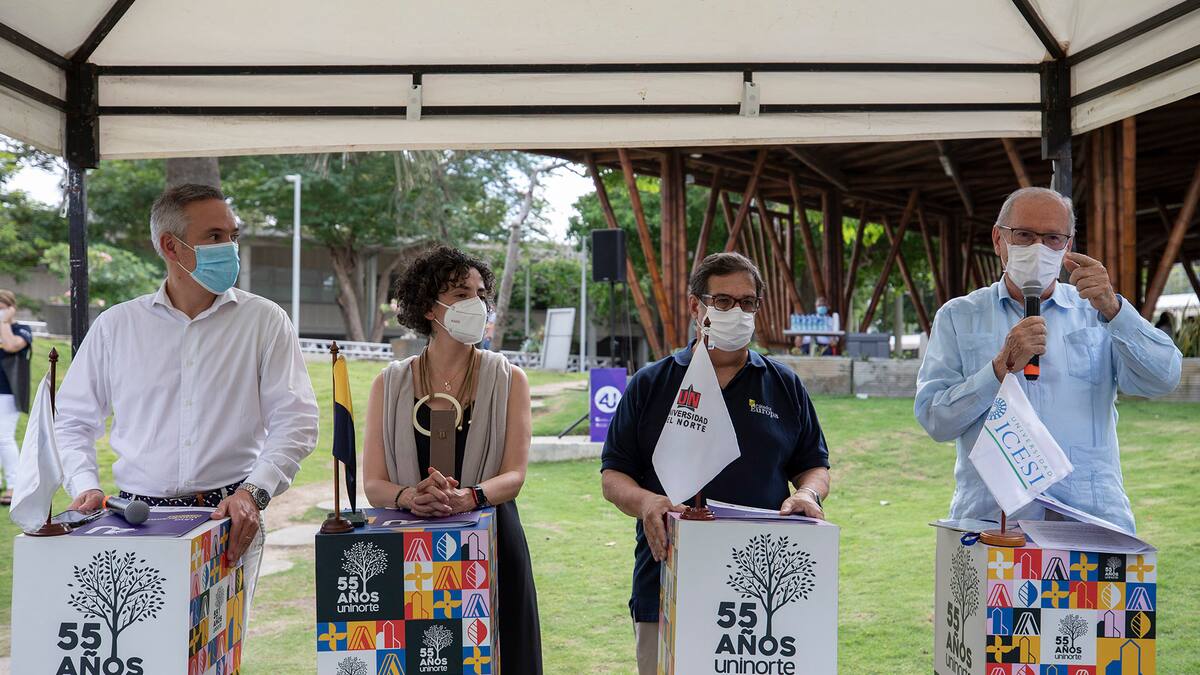 Para finalizar la jornada, el 21 de octubre se llevó a cabo la tradicional ceremonia de la Siembra del Árbol de la Amistad. Durante el encuentro, los rectores de las cuatro universidades ratificaron su alianza mediante sus firmas y el acto simbólico de plantar un macondo en el campus de Uninorte. El macondo, un árbol similar a la ceiba que puede alcanzar hasta 40 metros de altura y que se ha convertido en un referente emblemático para las letras del Caribe, fue sembrado frente al edificio de Ingenierías como símbolo de la amistad que sostiene la Alianza 4U y el compromiso que seguirá creciendo entre estas instituciones de educación superior.