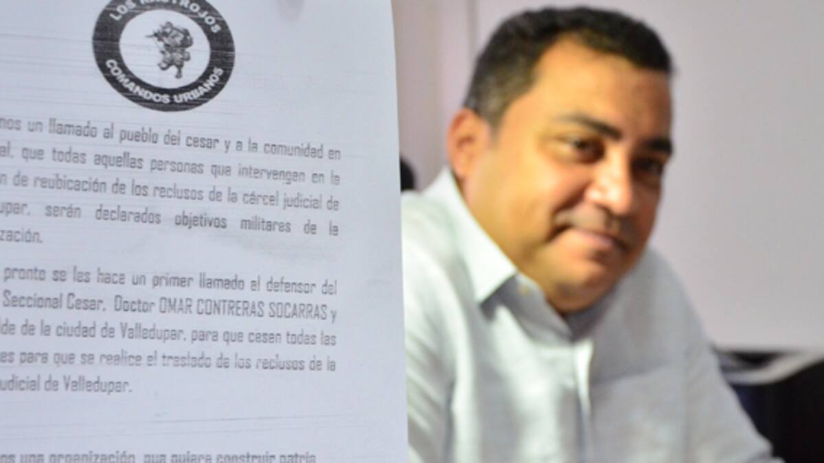 Las autoridades en el Cesar iniciaron las investigaciones para determinar de dónde proviene el panfleto y su grado de peligrosidad en el que amenazan de muerte al alcalde de Valledupar Fredys Socarrás Reales, y al defensor del Pueblo de este departamento, Omar Contreras Socarrás, en la foto; por insistir en acabar con el hacinamiento en la Cárcel Judicial, que aunque está habilitada para albergar a 250 reclusos tiene más de mil 100 personas presas.